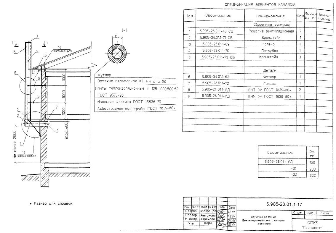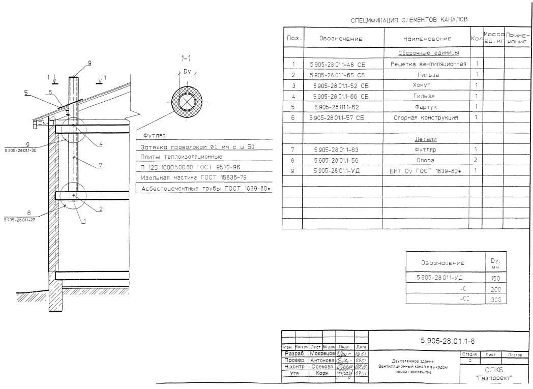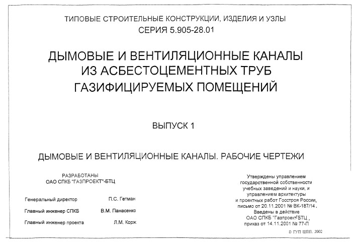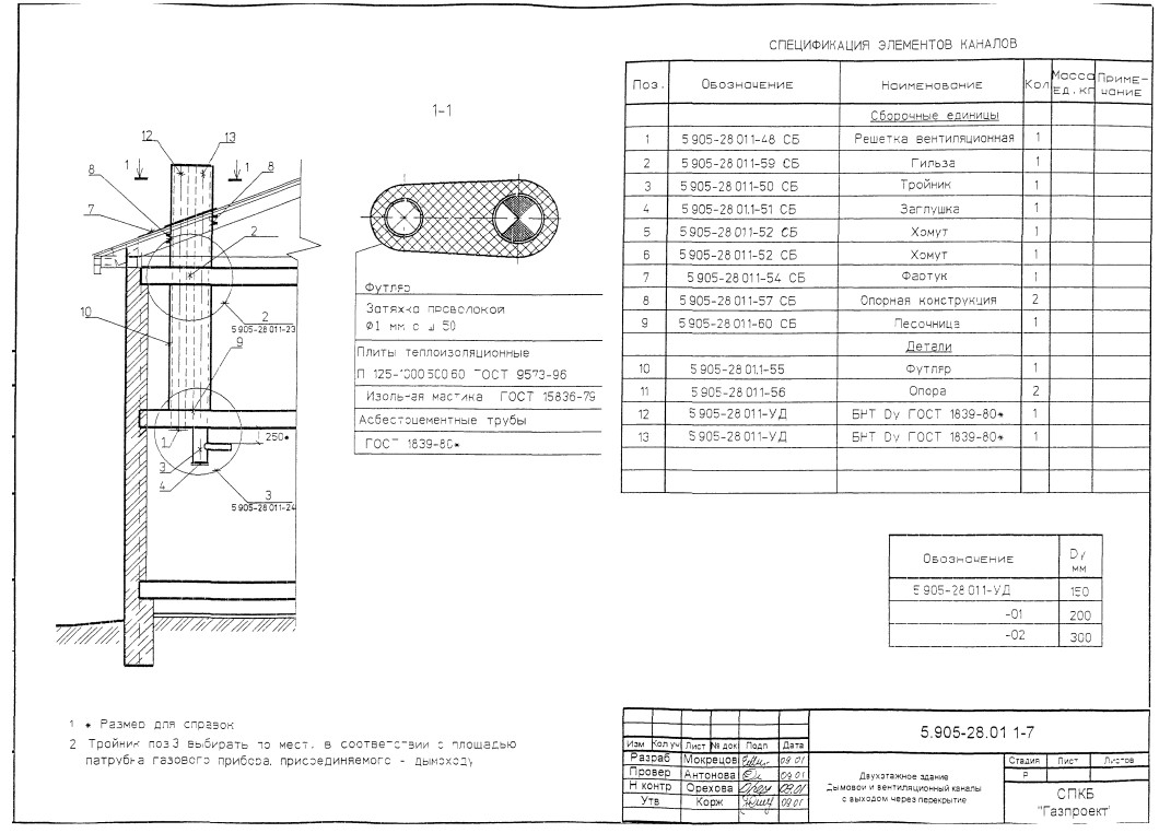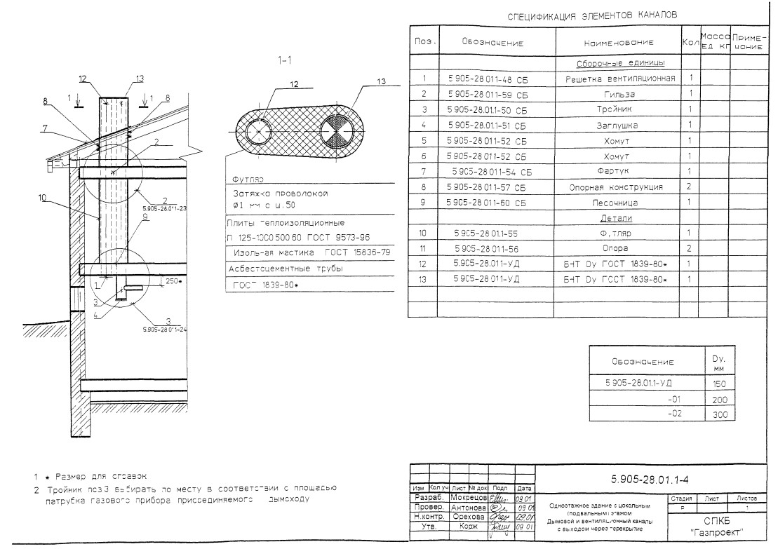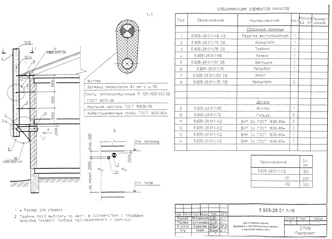 ДЫМОВЫЕ И ВЕНТИЛЯЦИОННЫЕ КАНАЛЫ. РАБОЧИЕ ЧЕРТЕЖИ