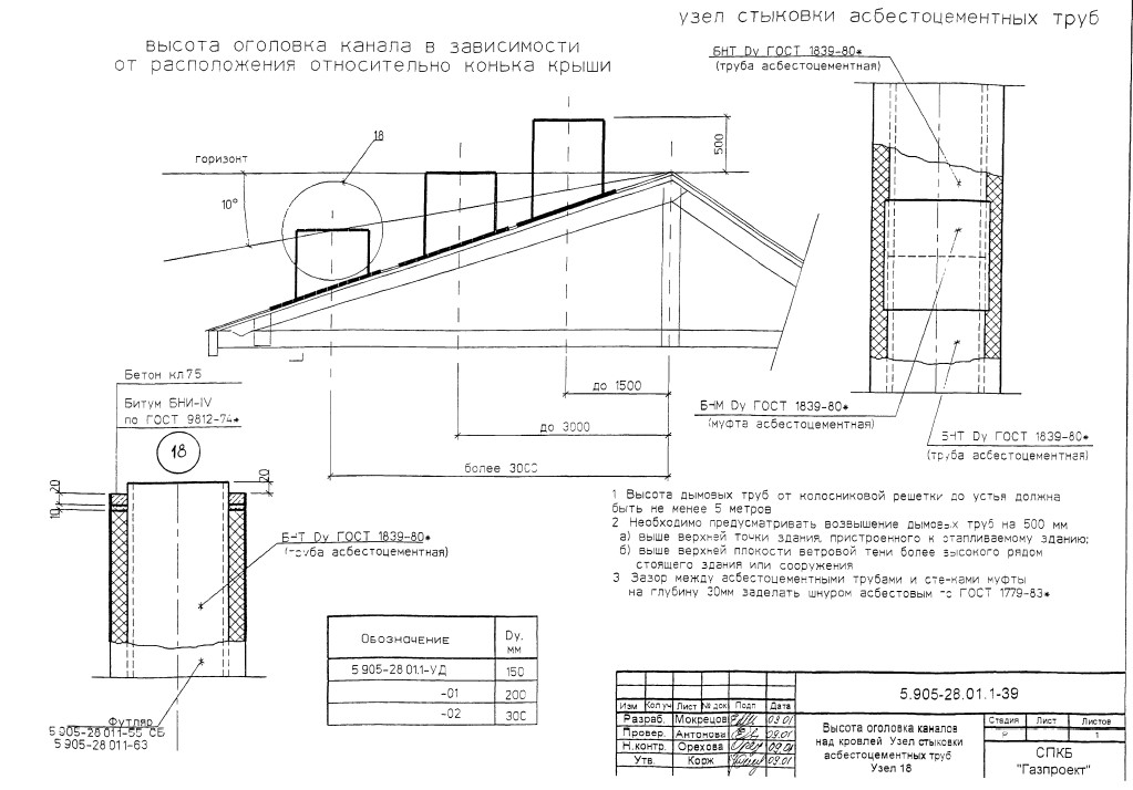 Дымовые и вентиляционные каналы из асбестоцементных труб газифицируемых помещений